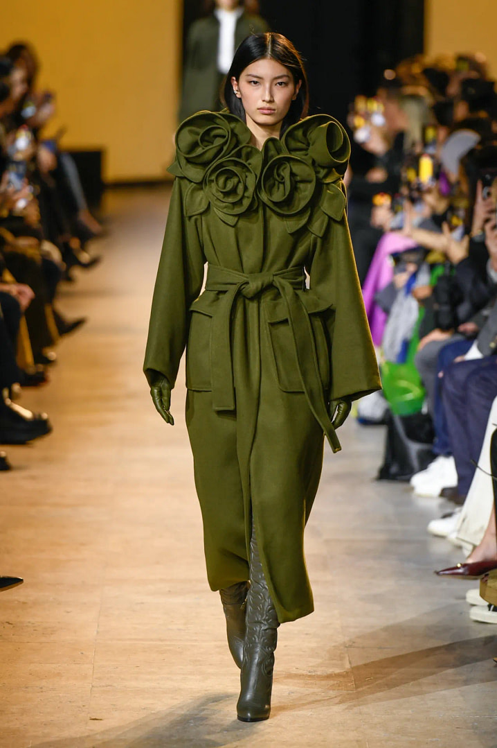 Similarly, Marco Rambaldi celebrated this warm tone, creating garments that seem to embrace the wearer, conveying a palpable sense of warmth and comfort. His collection explored the concept of hospitality, making brown not only a fashion trend but also an expression of emotion.