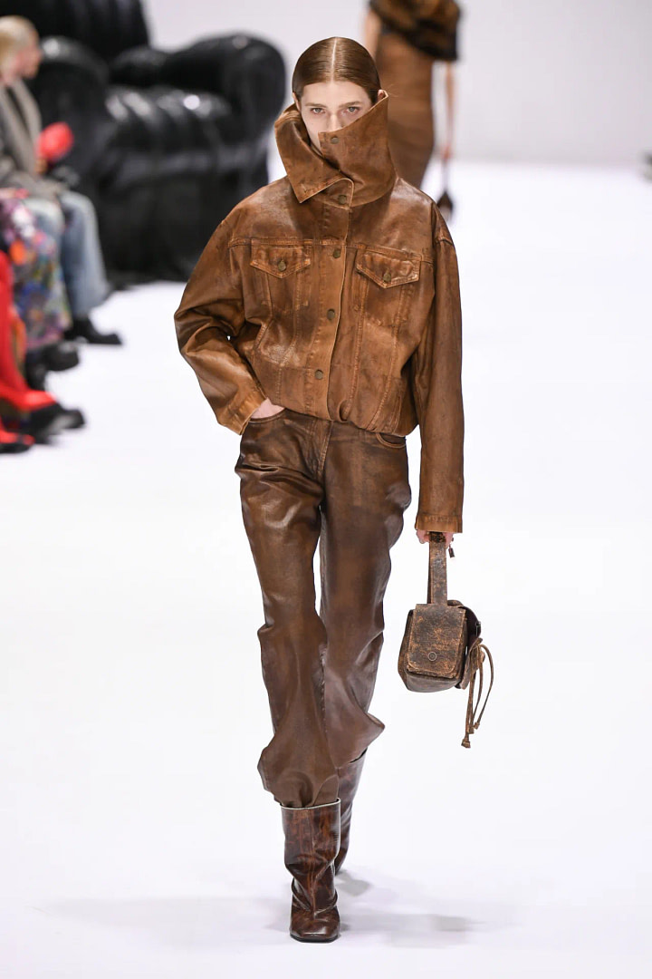 Jacob Cohën explored the potential of brown in his innovative work with denim. His collection celebrates freedom and feminine strength with a balance of classic and contemporary through structured jackets, soft pants, and a palette that includes earthy tones, confirming the endless adaptability of brown.