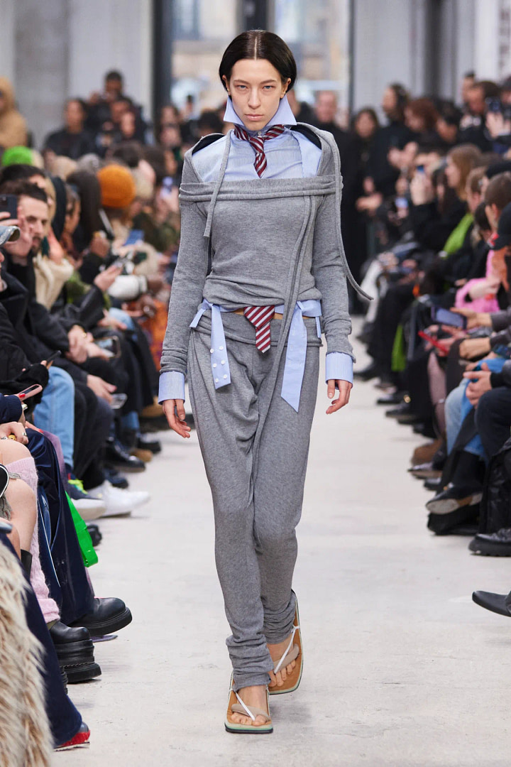 The use of grey in these collections not only highlights its ability to convey comfort and understated luxury but also makes it ideal for garments that blend functionality and style. The choice of fabrics with different textures adds depth to the garments, playing with shades and light reflections to create outfits that express refined visual complexity. This ability to adapt and simultaneously express sobriety and innovation makes grey a preferred choice for designers aiming to communicate measured yet impactful elegance.