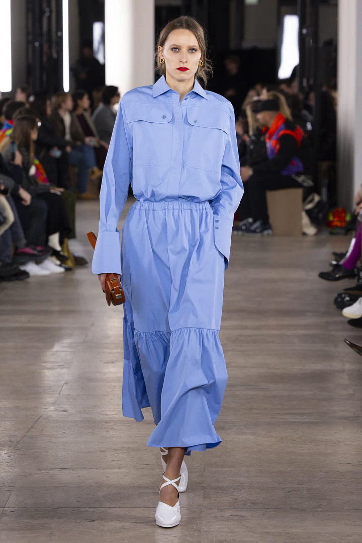 Designers of the caliber of Kiko Kostadinov, Zomer, Miu Miu, Louis Vuitton, and Patou have masterfully incorporated these hues into their collections, offering interpretations that express freedom, hope, and a deep connection to the natural world. In this way, light blue has become a catalyst for emotions and meanings, testifying to the ongoing dialogue between fashion and the environment, and establishing itself as a key element of the season.