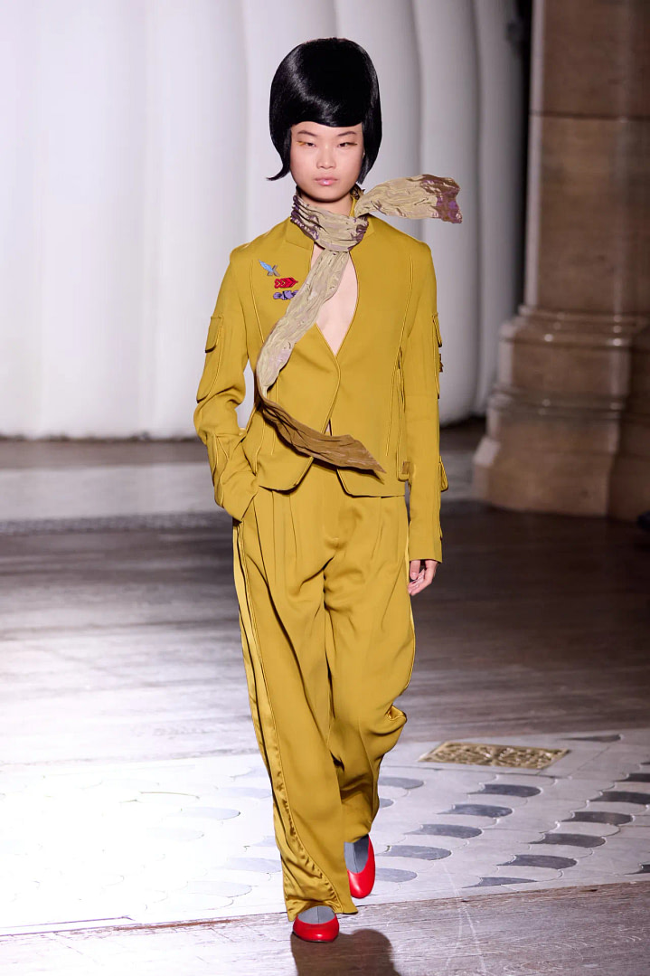 The stylistic choices of these three designers, combined with the versatility of Misted Marigold and Yellow Jasper, demonstrate how these hues can be interpreted in multiple ways, creating looks that combine energy, elegance, and modernity.