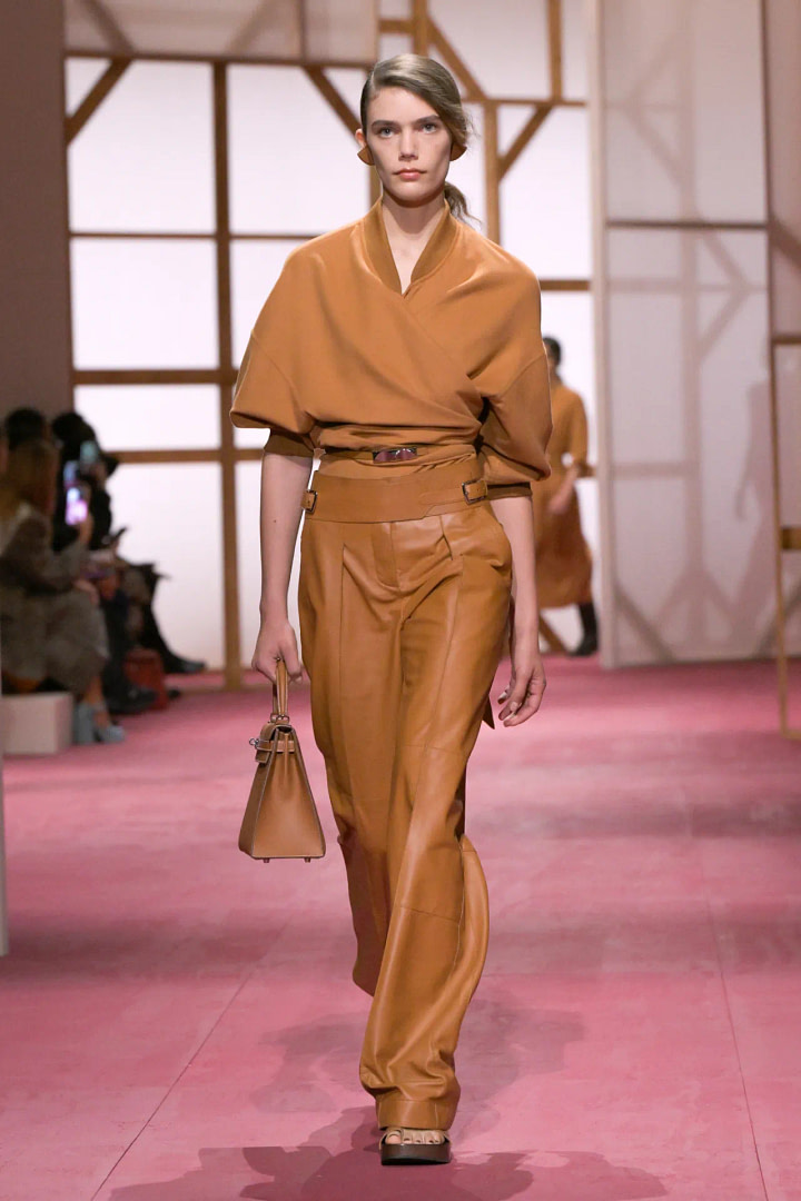 Hermès chose Bran for lightweight trench coats and leather accessories, combining its typical elegance with a color that fits seamlessly into the brand’s sophisticated aesthetic. Bottega Veneta also used this shade for bags and shoes, infusing a touch of naturalness and luxury into its creations.