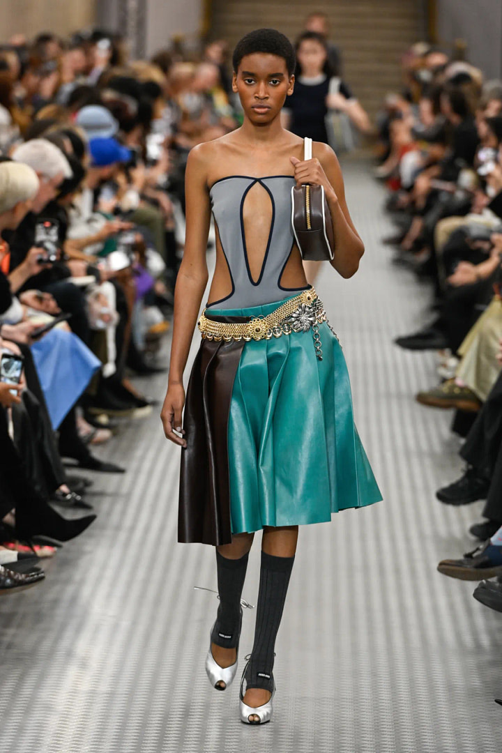 Alongside these shades, Miu Miu chose Viridian Green, a deep green with bluish undertones, for dresses with a modern and fresh cut. This tone captured the relaxed essence of the season, infusing sophisticated vitality into the looks. The soft lines and light fabrics made Viridian Green perfect for a woman who seeks elegance without sacrificing comfort, combining modernity and freshness in a perfect balance.