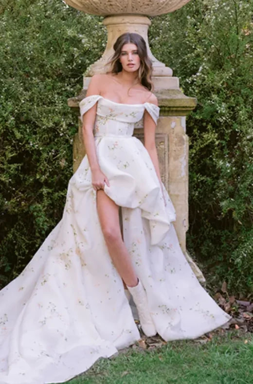 Furthermore, some bold creations go beyond simple floral applications and feature intricate floral prints or embroideries. These details add an additional layer of charm and complexity to the dress’s design, offering a romantic and refined style that is perfect for an unforgettable wedding ceremony.