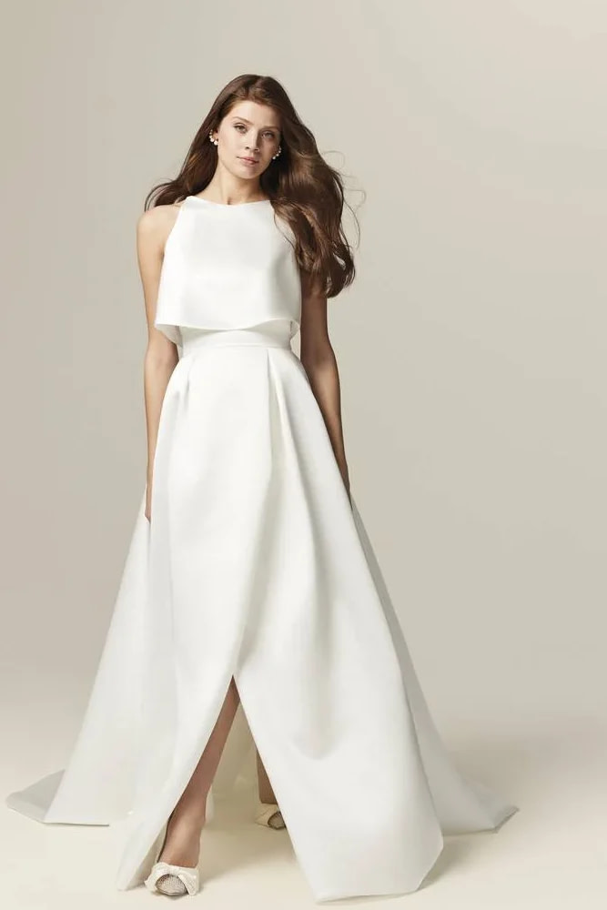 new tess offers a wide range of high-quality fabrics, ideal for perfectly complementing your front-slit wedding dress. With our selection of premium fabrics, you can be confident in achieving the unforgettable look you desire for the most important day of your life.