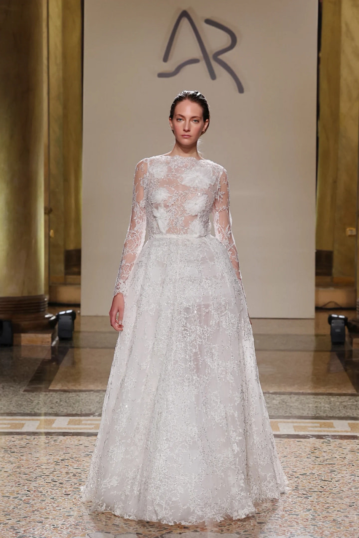 Sequins will take center stage, from the radiant embellishments on bodices, capable of magically capturing the light, to skirts that emit their own radiance. From veils that glisten like diamonds to sleeves, every detail of wedding dresses will be infused with sparkling magic and luxury, transforming every bride into the undisputed queen of her special day.