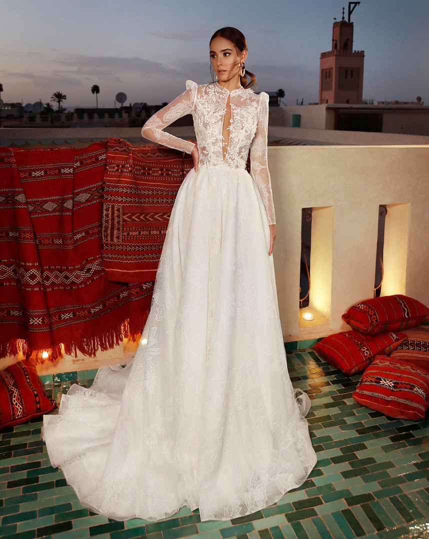 La robe de mariée à imprimé floral est un must au printemps, une ode au réveil de la nature. Une fleur sur une robe de mariée est un symbole de délicatesse et de beauté et constitue le choix idéal pour celles qui rêvent d’un mariage raffiné et romantique.