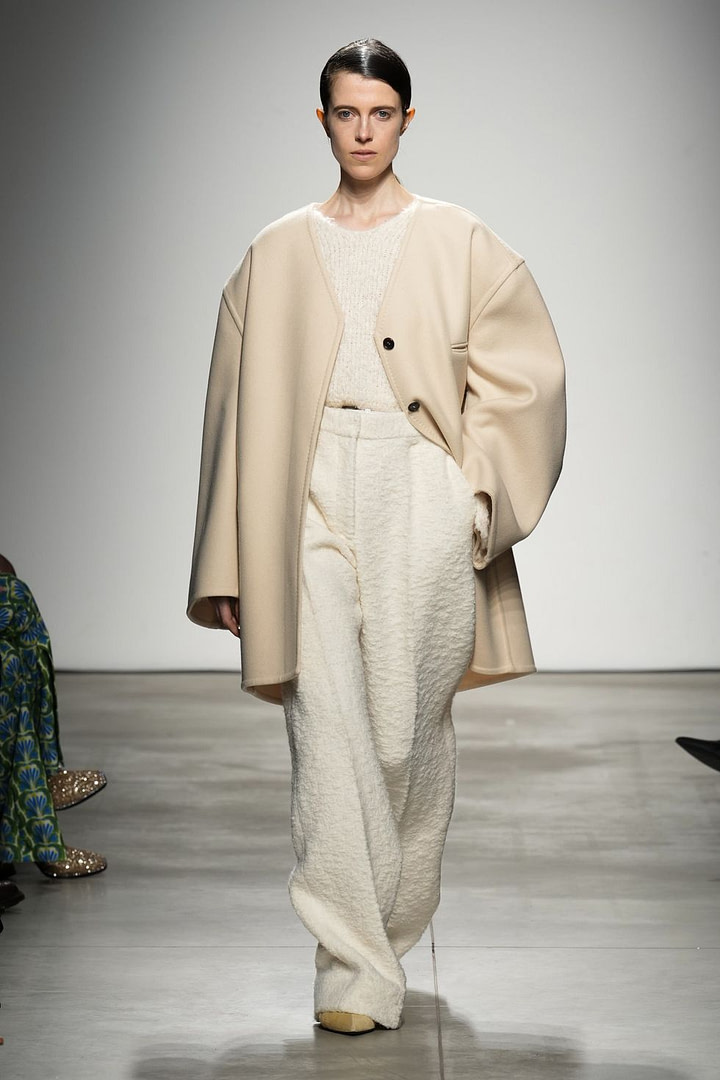 Inoltre, il beige è stato utilizzato anche in combinazione con altri colori, come nel caso del look Sportmax Autunno Inverno 2023-24, che ha mixato il beige con il rosa cipria. Questo mix di tonalità neutre e delicate crea un look romantico e raffinato, perfetto per una serata elegante.
