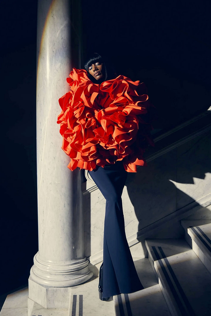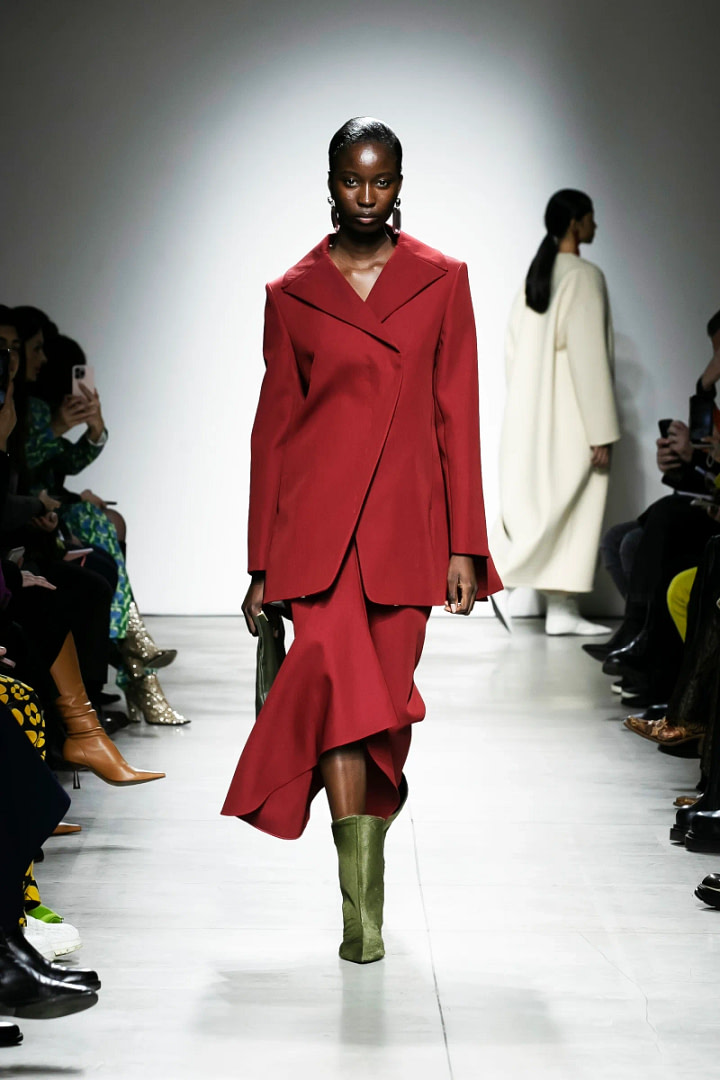 Calcaterra ha puntato sul rosso magenta per colorare le sue mise geometriche.